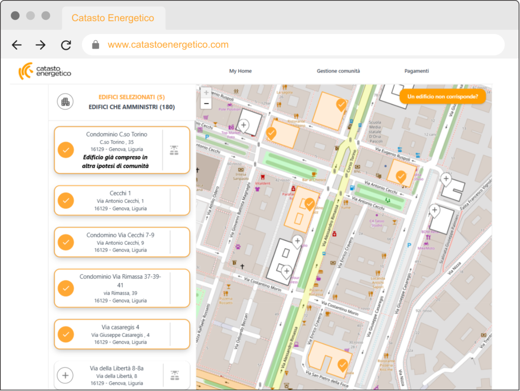 Raccoglie automaticamente tutti i dati tecnici degli edifici. Supporta gli amministratori di condominio e le ESCo nella progettazione e gestione di comunità energetiche ed interventi di riqualificazione energetica.